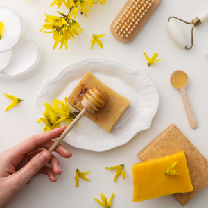 Beeswax is a natural emollient meaning it forms a protective barrier on the skin's surface, sealing in moisture and protecting the skin from environmental irritants and pollutants. This protective barrier helps to shield the skin from harsh weather conditions, such as wind and cold, as well as from the damaging effects of UV radiation.When added to skincare products beeswax helps to improve their texture, making them easier to apply and providing a luxurious feel.